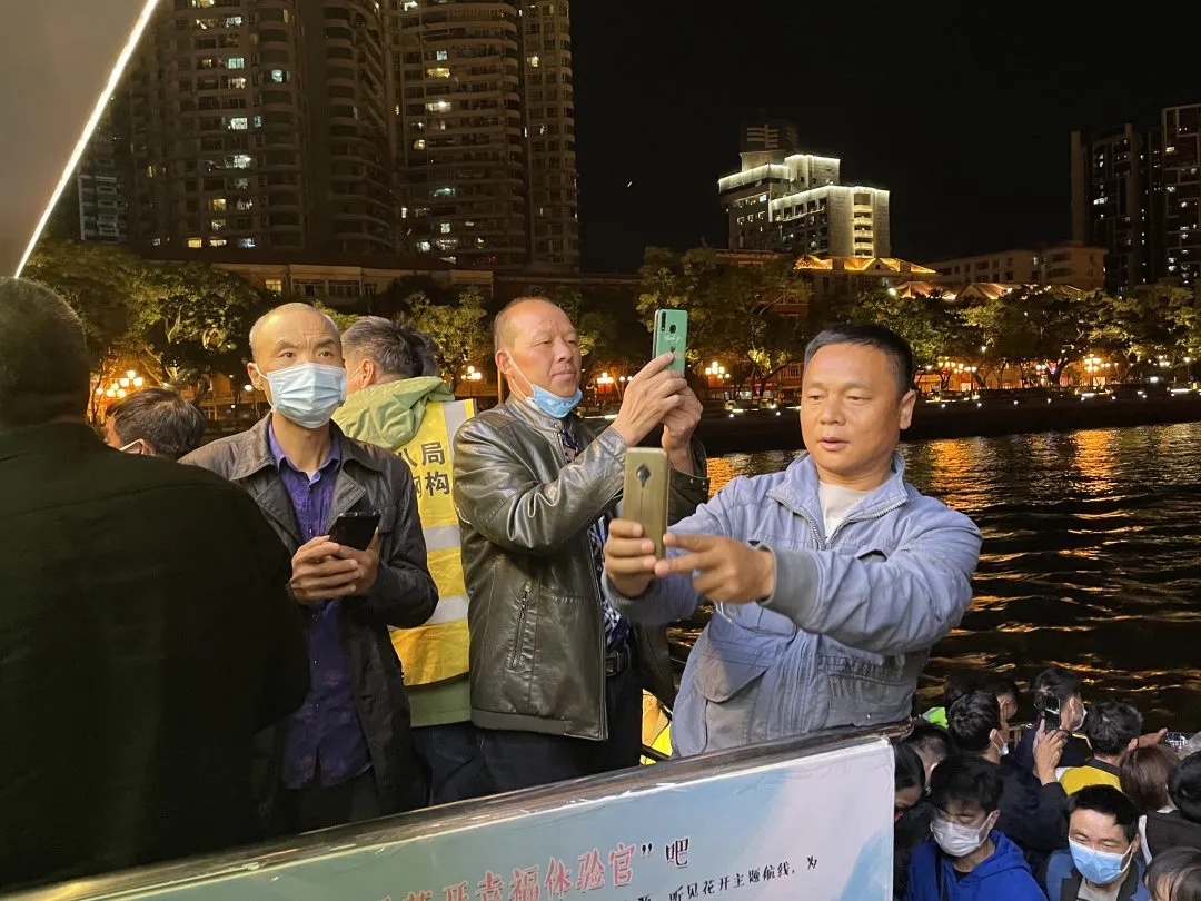 今夜在珠江上领略着两岸的壮丽景色,品味着精神文化大餐,广大工友们感受到了广州浓浓的年味和节日气氛,也感受到了广州的温暖。大家开心得连连拍照,发给远方的家人分享喜悦。